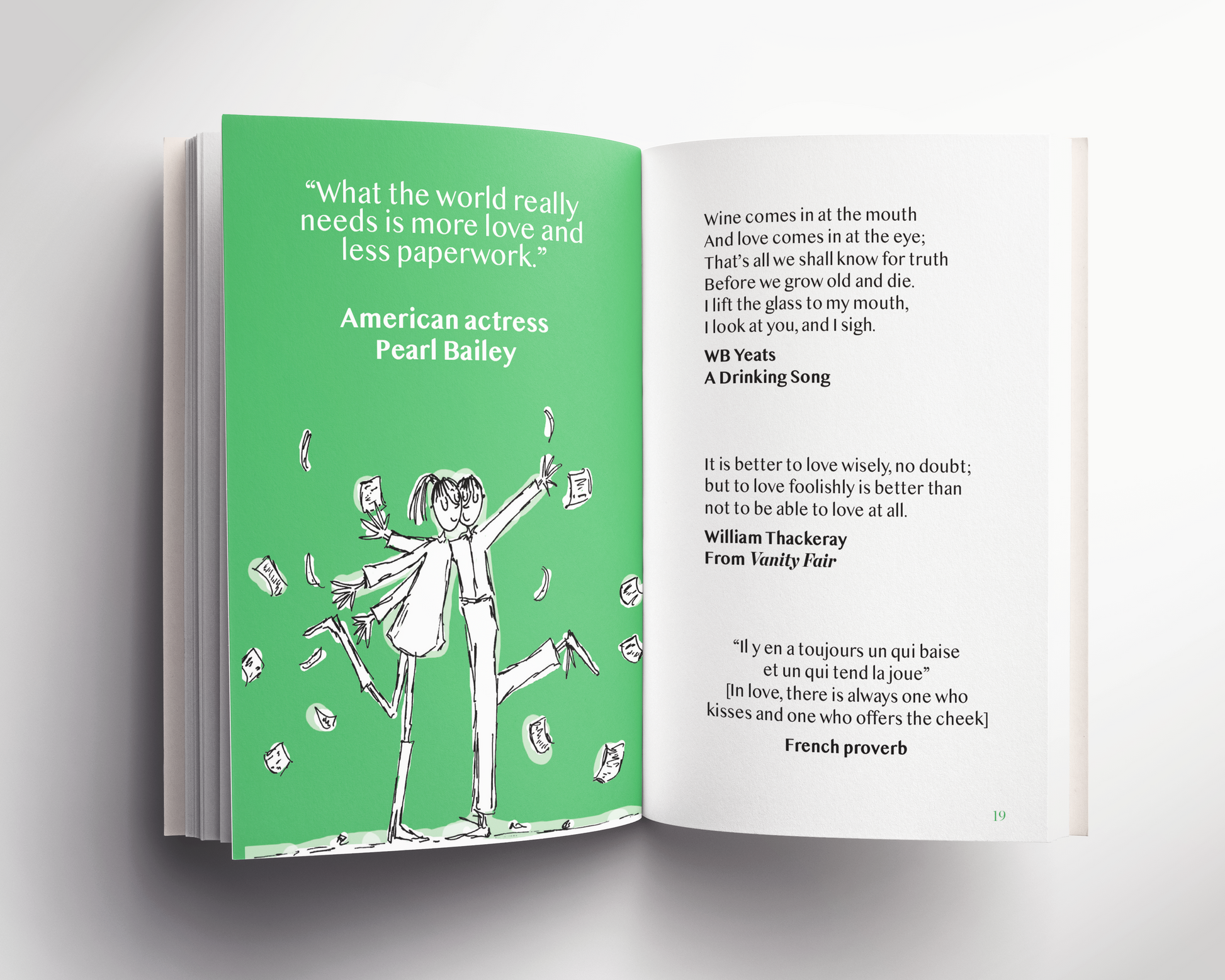 As with Insults, you’ll find nothing predictable about this volume. True to the spirit of The Knowledge, there’s plenty of wit as well as wisdom. So don’t expect a po-faced collection of schmaltzy poems celebrating love in all its splendours. There's plenty of fun quotes, poetic gems and short, thought-provoking bits of prose.